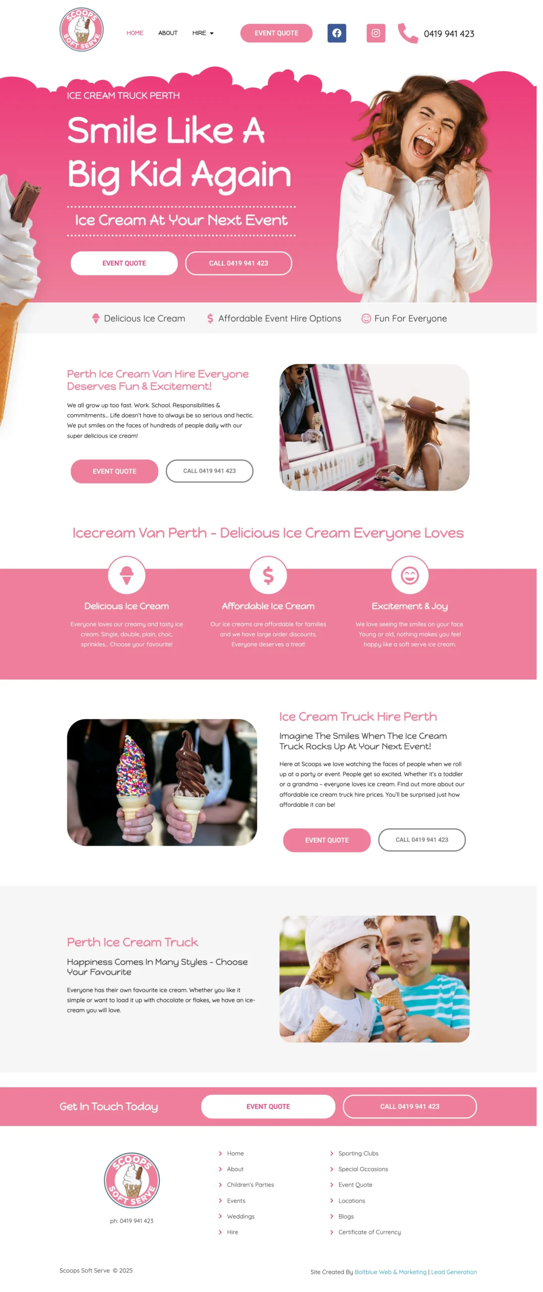 The result was a website that works like a digital sales tool attracting the right visitors and encouraging them to take action. With clearer messaging and an improved user journey, Scoops Soft Serve can now generate more enquiries from families and event organisers who want an easy, reliable catering option. The new design positions them as a trusted local provider while highlighting their biggest strengths: fast setup, friendly service, flexible options, and broad appeal for guests of all ages. Most importantly, the website now supports consistent lead generation by making the booking process feel quick, seamless, and stress-free.