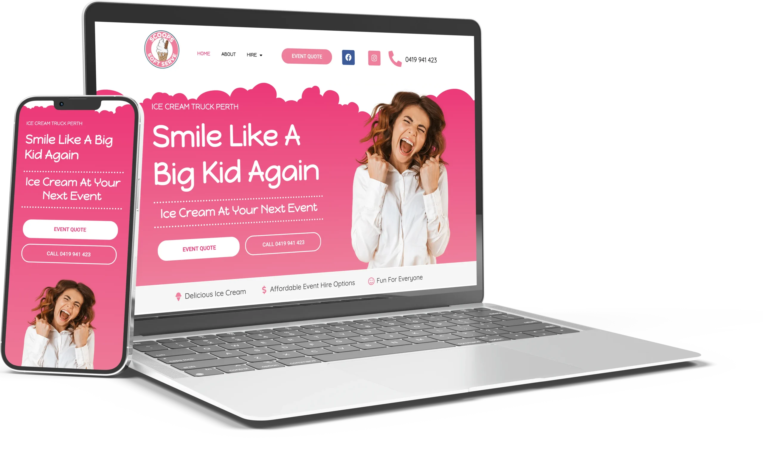 Scoops Soft Serve is a Perth-based ice cream truck hire business that brings creamy soft serve, slushies, and icy drinks to events of all sizes from school fêtes and community celebrations to weddings and corporate functions. As their bookings grew, they needed a website that clearly communicated their packages, highlighted their wide appeal, and made it effortless for event organisers to enquire. They came to us to strengthen their online presence and sharpen their digital strategy so more website visitors turned into genuine leads. With website design as the focus, we built a site that speaks directly to their ideal customers and guides them towards getting in touch.